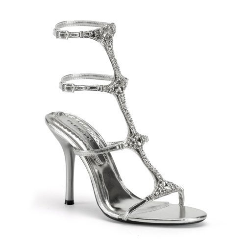 ENCHANT-53, Sexy Prom or Formal Party 4'' T-Strap Quadri-Band Sandal With Rhinestones in Silver Metallic by Pleaser USA Shoes