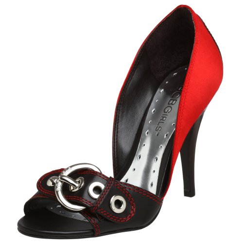 Get posh with this sleek pump from BCBGirls. You are sure to inspire jealously with this beautiful black patent leather and black satin heel named 'Patric'. The open-toe is accented with a bold silver buckle and the satin heel counter is accented with patent leather and a silver BCBGirls stamped grommet. With a 4" stacked stiletto heel, this sleek heel is not to be missed. Also available from Street Moda in Amaretto/Honey and Dark Brunette/Fire Engine while supplies last. BCBGirls Style Name Patric. Black.